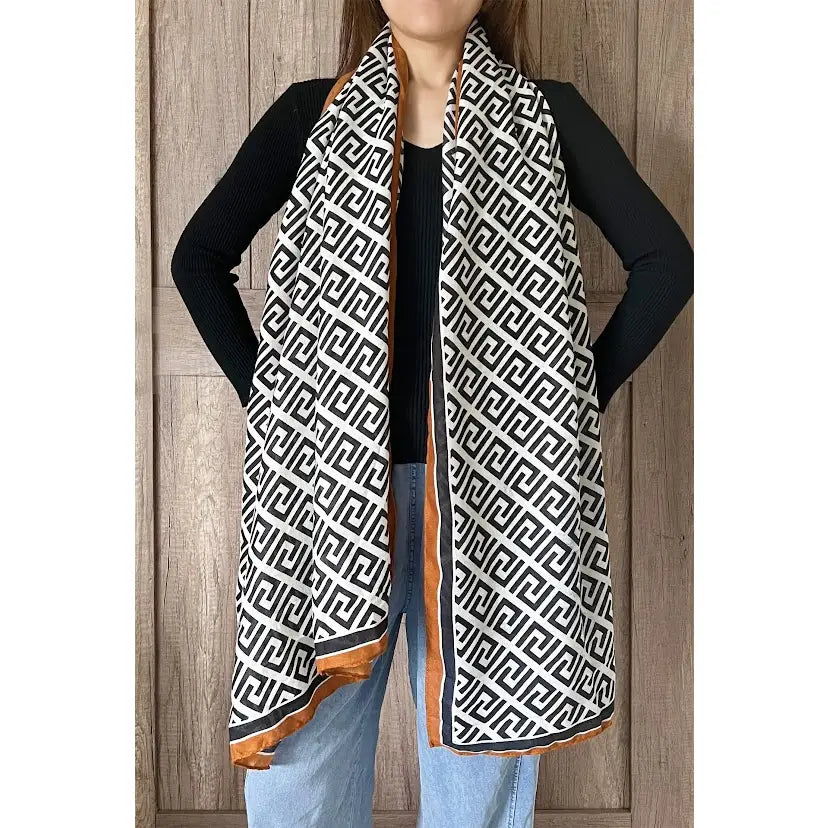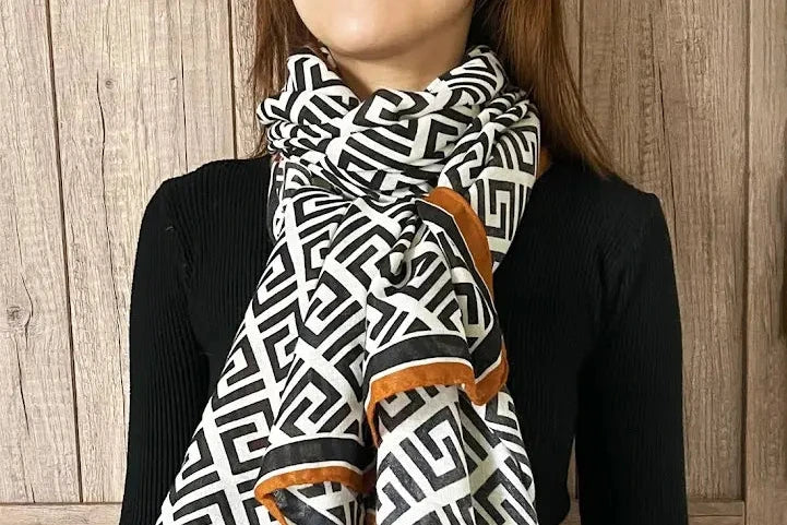 Black Geometric Maze Pattern Women's Shawl Scarf