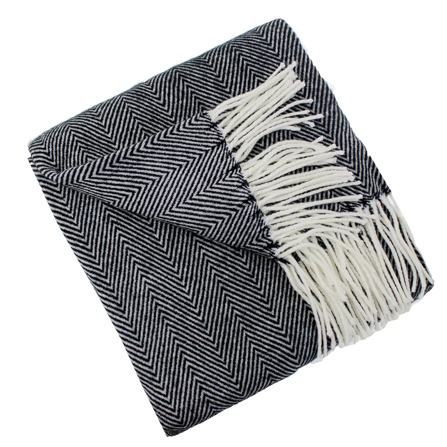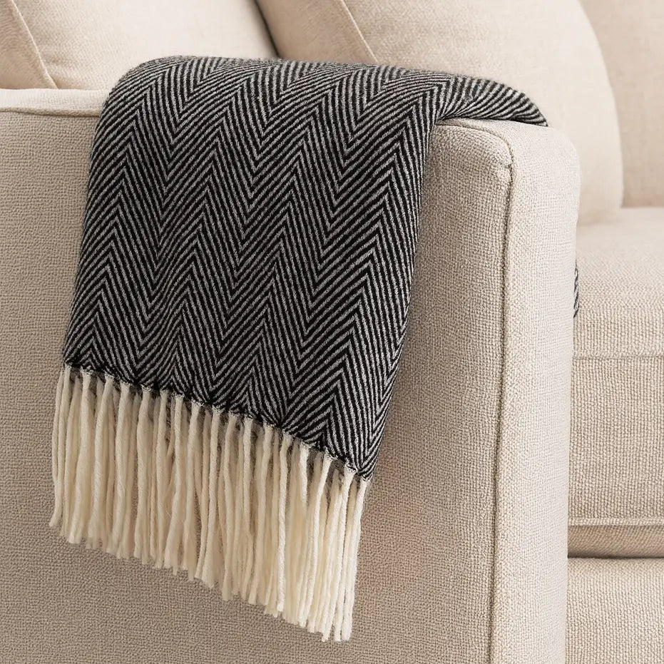 Black Herringbone Fringed 50x60 Inch Throw Blanket