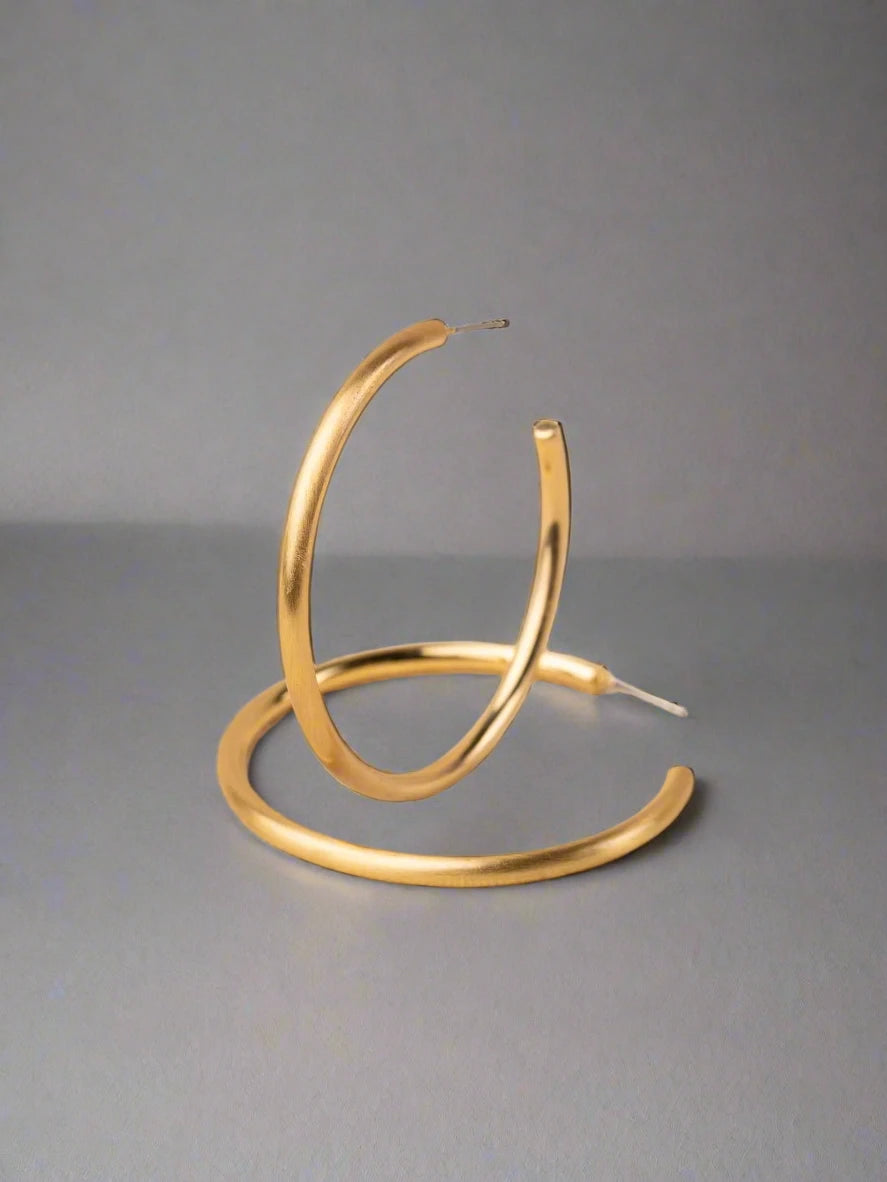 Measuring 2" diameter, these statement hoop earrings strike the perfect balance between timeless elegance and bold sophistication. Inspired for high-fashion jewelry and refined style these are crafted to elevate every woman’s confidence and beauty.