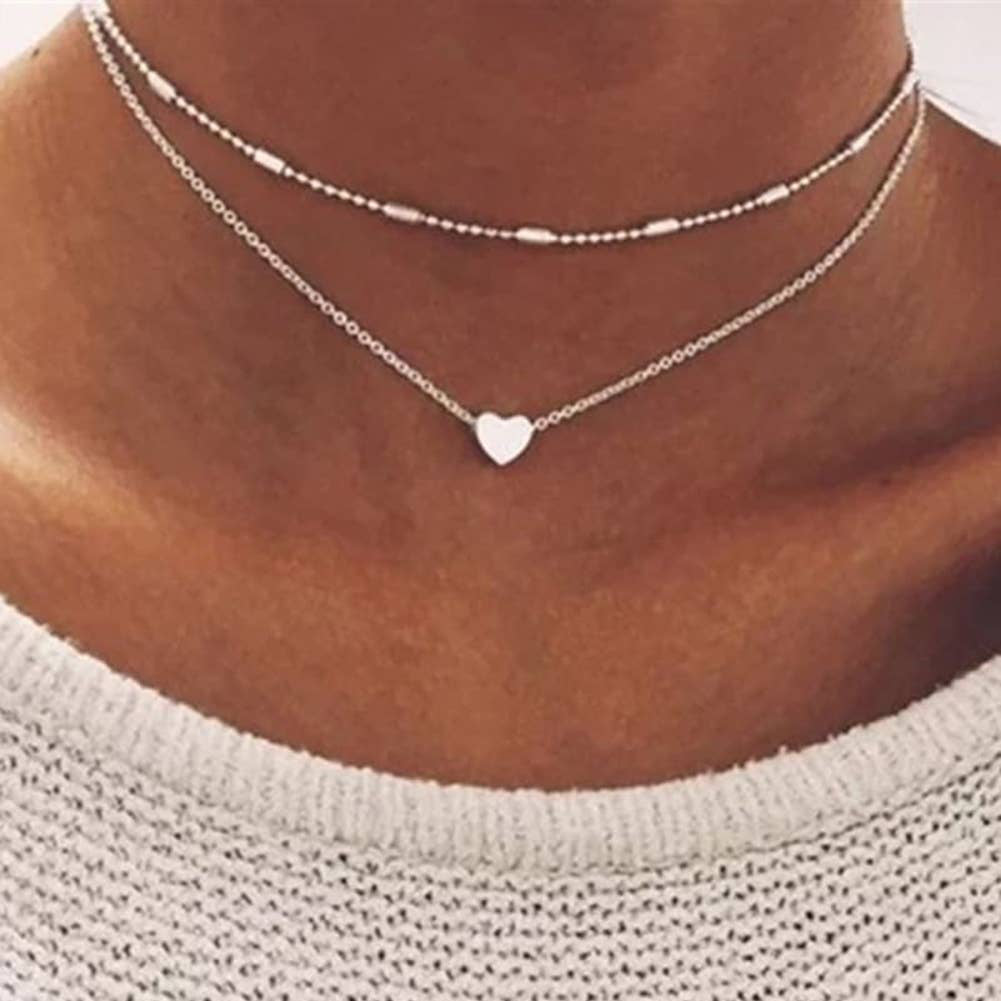 Heart Shaped Layered Chain Necklace
