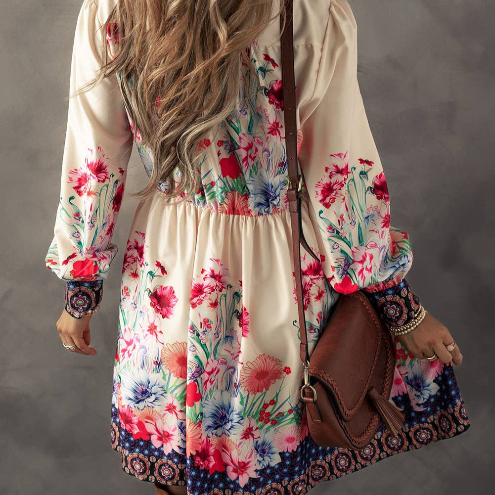 Floral Print Buttoned High Waist Shirt Mini Dress