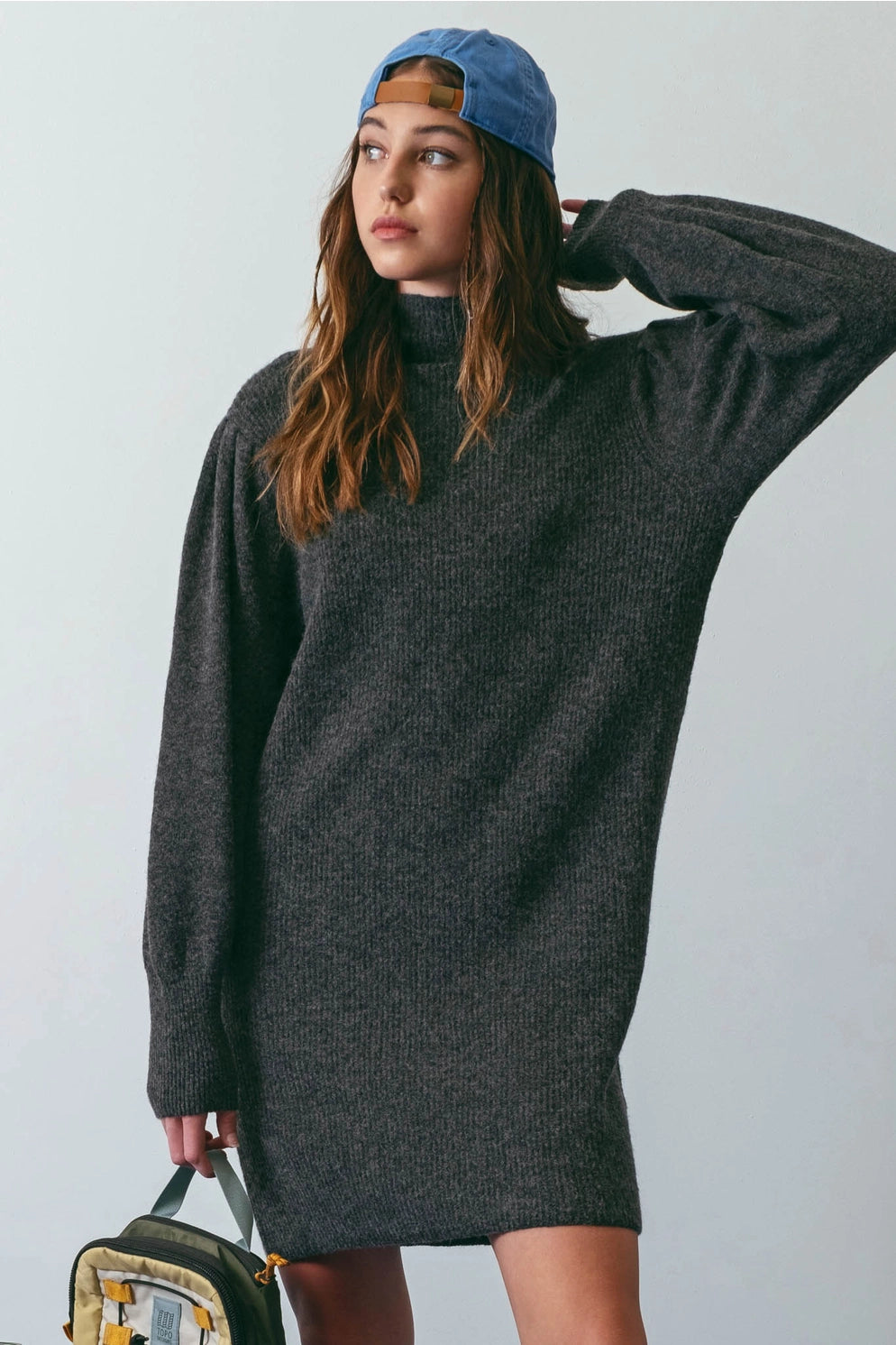 Regular price $17.00Mock Neck Knit Sweater Dress with Ruched Shoulder Detail