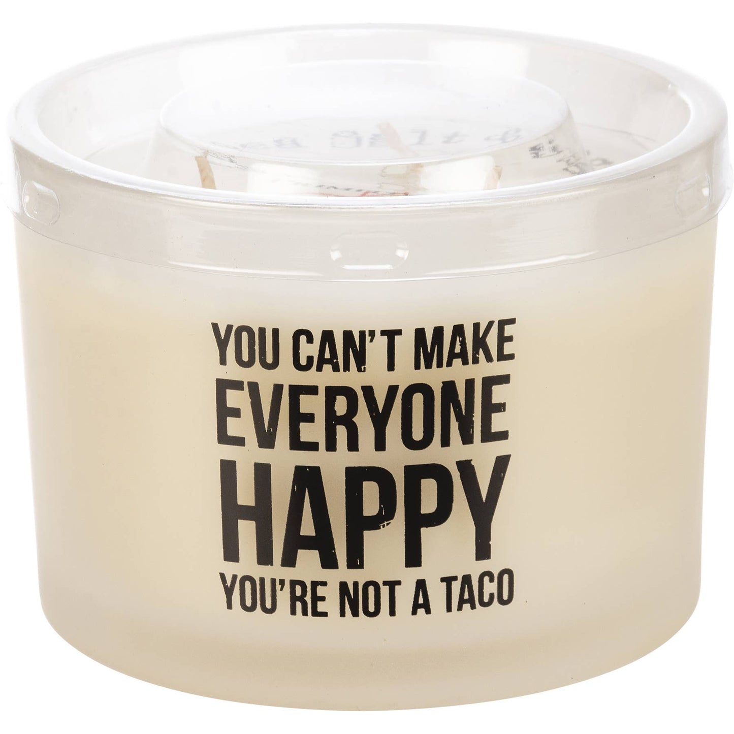 Regular price $16.00A frosted glass vessel holds this soy-based wax candle from our Box Sign Style Collection featuring a refreshing Sea Salt & Sage scent. Box sign style art features "You Can't Make Everyone Happy You're Not A Taco" sentiment.