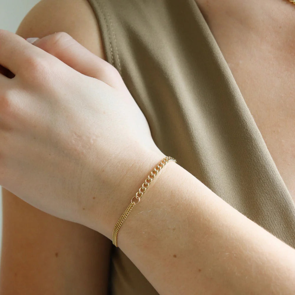 The new East/West bracelet fuses the structured elegance of the Demi Alexandra or Carter with the sleek, modern edge of the Makara chain. The result? A striking, everyday statement piece that layers beautifully and stands strong on its own—perfect for elevating your daily rotation.
