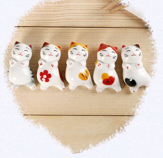 This elegant Gohobi Ceramic Lying Down Cat Chopstick Rest is a beautiful yet practical addition to any well-appointed table. Crafted from ceramic, the five cats featured in this sophisticated set lend a tasteful cultural touch to any table. Enjoy a touch of creativity at your next meal with this exclusive chopstick rest.